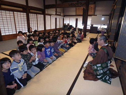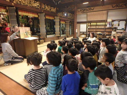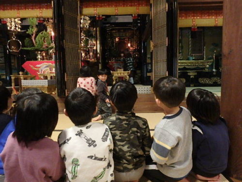 園長先生が、報恩講の意味のお話や親鸞様の紙芝居をしてくれました